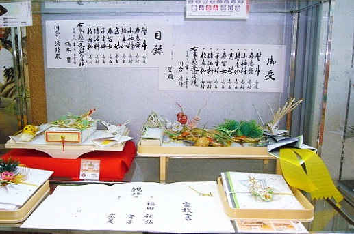 厳かな結納の儀式。お二人とご両家の絆を深めます。地域により様式が異なりますが、ご相談承ります。セット内容もいろいろとございます。詳しくは係員にお尋ねください。